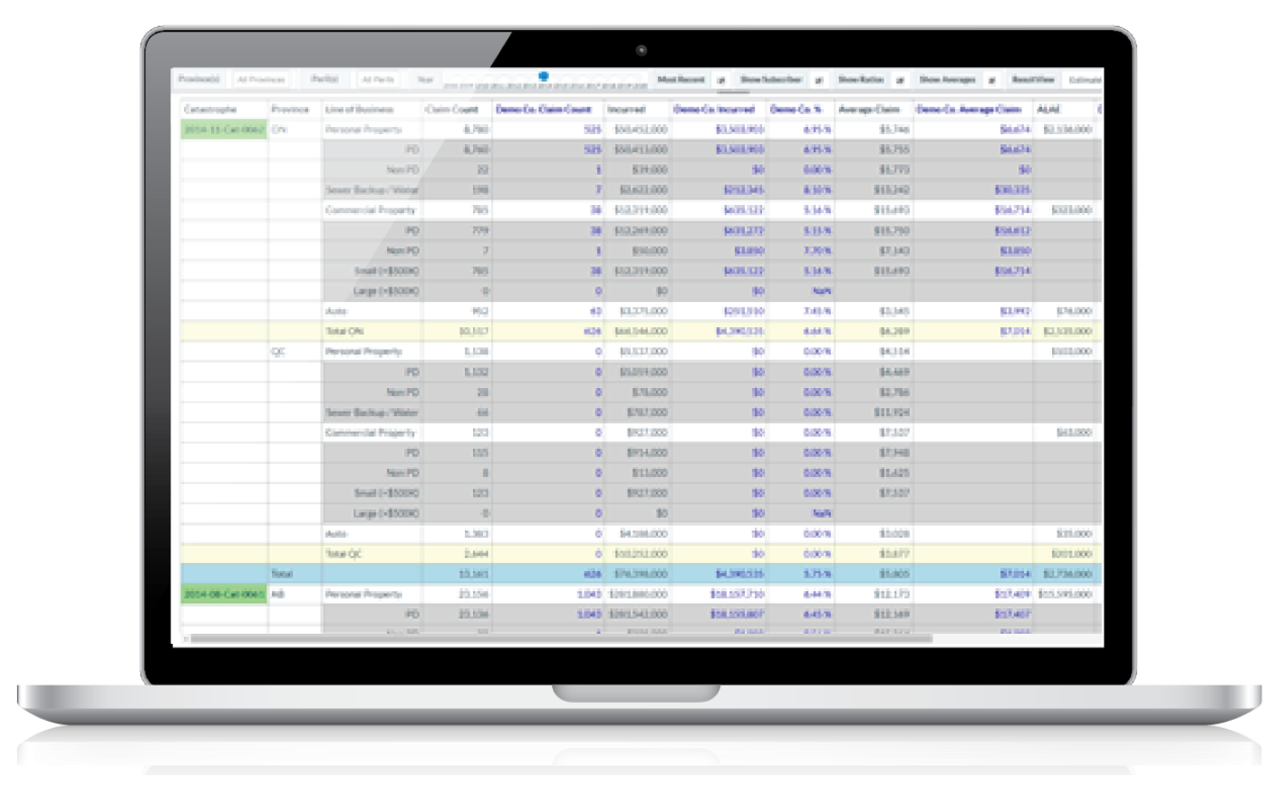 CatIQ’s loss data is displayed alongside the Canadian catastrophe database. This database contains loss information collected directly from insurers, along with meteorological and damage details, for all catastrophes in Canada since 2008. Specific loss data is produced for CATs by province and by line of business. A CAT is as an event that results in more than C$30M of insured loss for the industry.