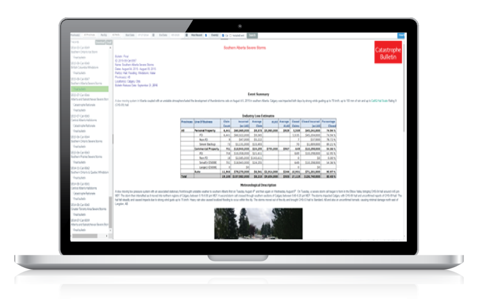 Through a state-of-the-art platform, CatIQ delivers analytical and meteorological information on Canadian natural and human-made catastrophes.